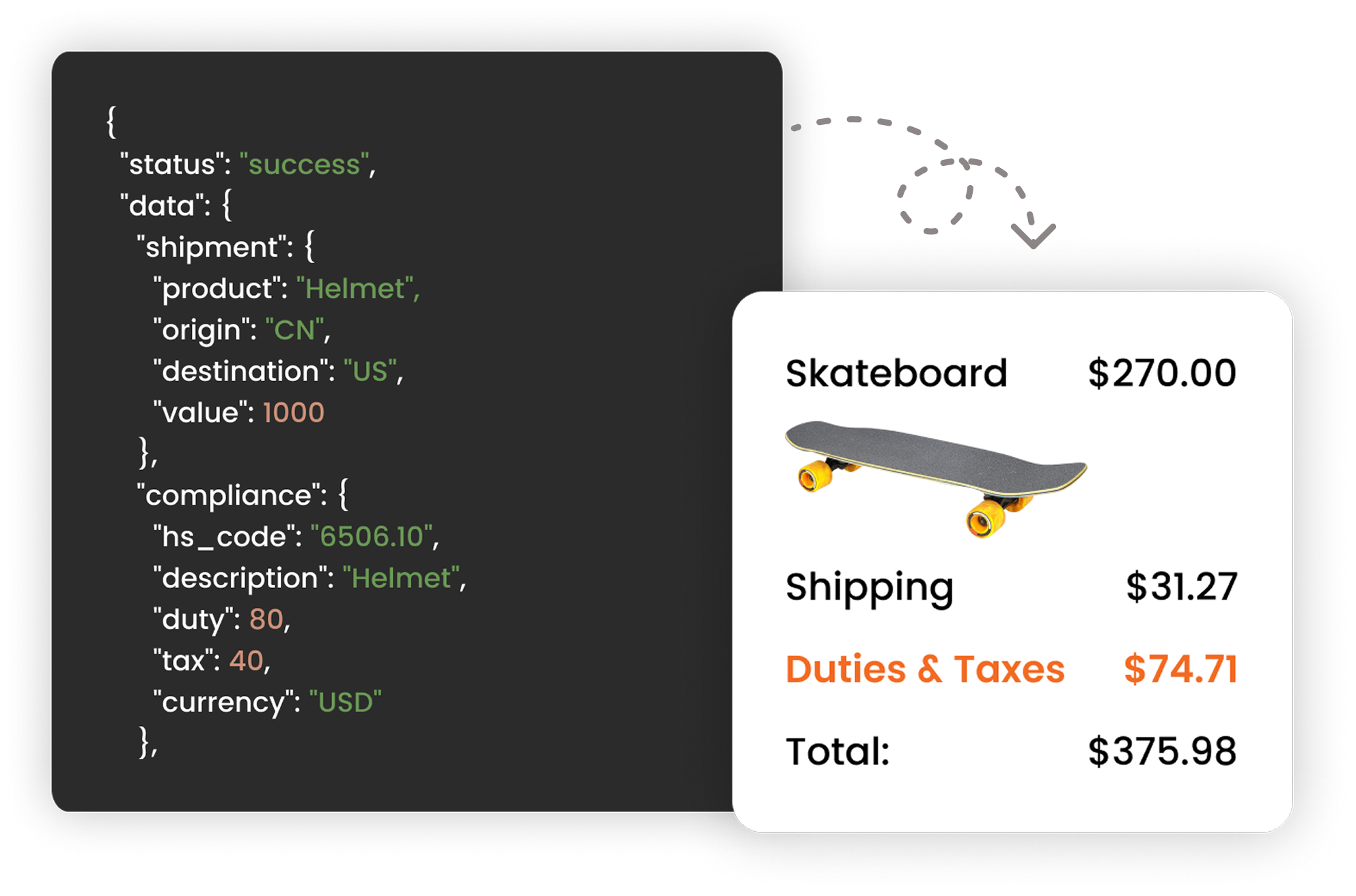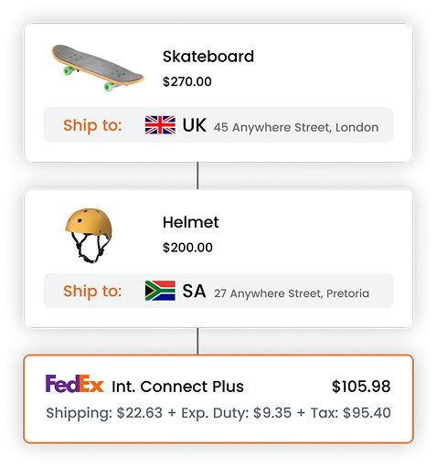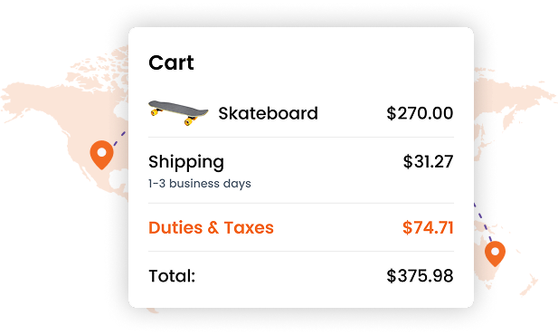 Next, you’ll need a total landed cost calculator that upfront shows you (and the buyer) the cost of the goods, delivery charges, and expected duties & taxes, i.e., the total landed cost. You’ll then collect the entire amount (total landed cost) from the buyer, i.e., the buyer pays you for the lot.