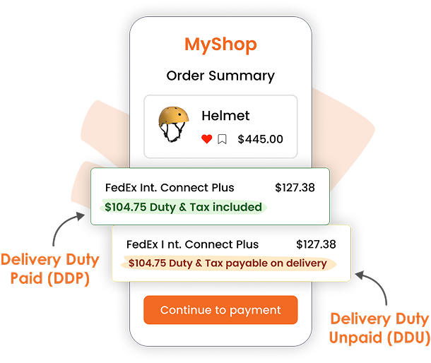 Remove the uncertainty for overseas buyers, who need to see the expected duties & taxes on your store’s check-out, so they aren’t caught by surprise. This TOTAL LANDED COST allows buyers to make an informed buying decision, which removes buyer’s remorse and promotes returning business.