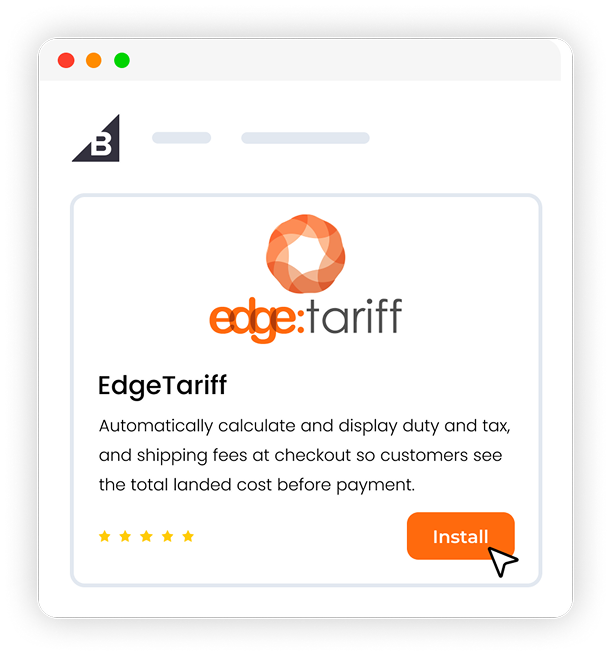 Search “EdgeTariff” in the BigCommerce Apps Marketplace, select Get This App. Free to install, and no development required.