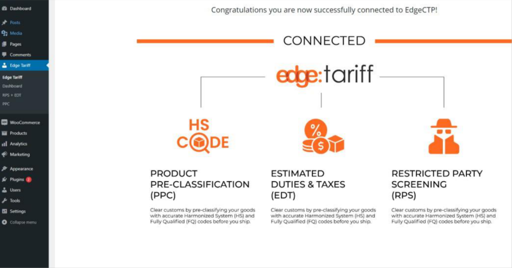 This section shows you how to connect your WooCommerce store with EdgeTariff.