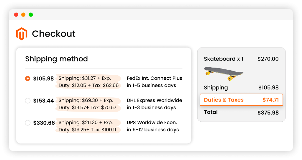 See if your Magento store checkout shows duties & taxes for any products with an HS code. Any issues? Get free onboarding support here.