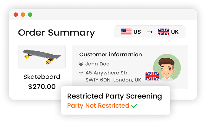 Screen overseas buyers against 33 live global denied party screening lists and ensure full