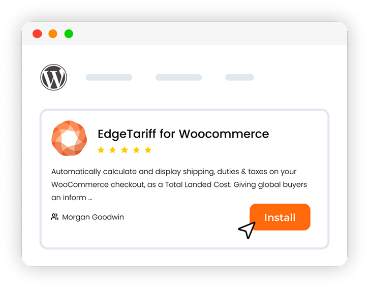 Search “EdgeTariff” in your WordPress plugin directory, select Install and then Activate. Free to download, and no development required.