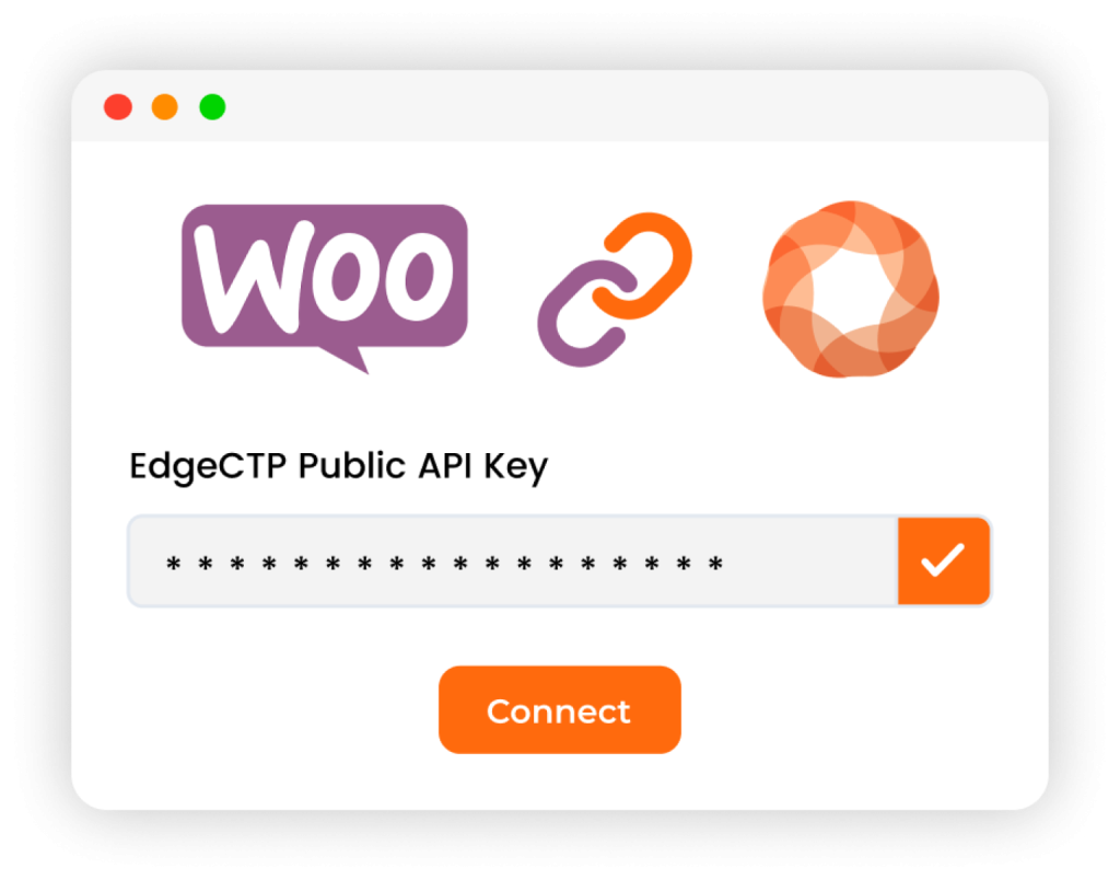 Sign up at edgectp.com. Get your API key. Paste them into the plug-in settings. And just Connect your Woo store with Edge.